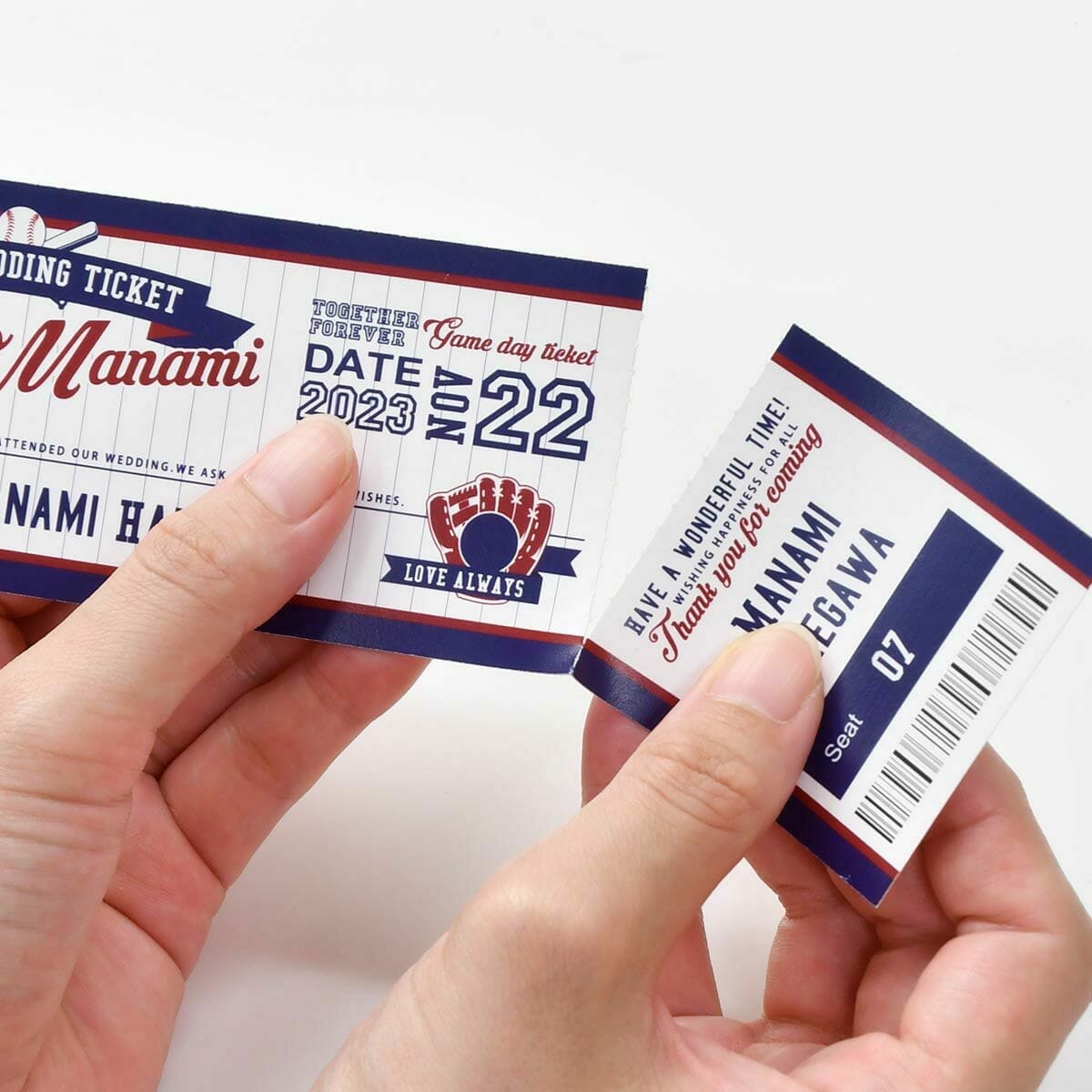 ↑野球観戦チケット風のエスコートカードです